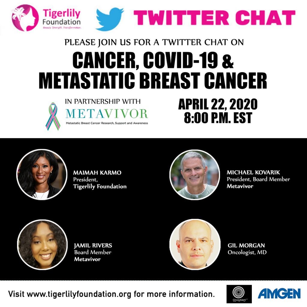 Register to receive a reminder for our April 22nd Twitter chat on Cancer, COVID19 and Metastatic Breast Cancer.